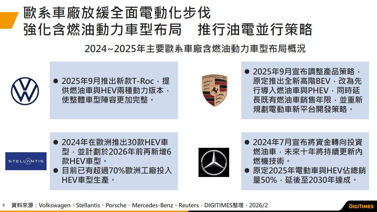 混合动力车成为欧洲市场主流 欧系车厂推行油电并行策略 并布局平价电动车以抗衡中企